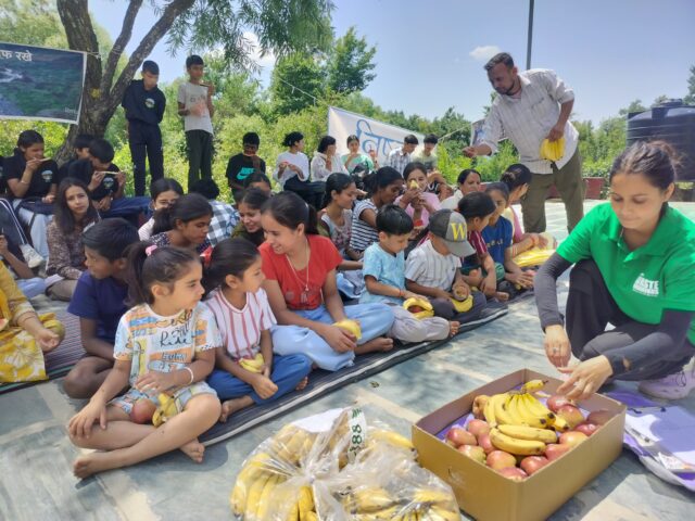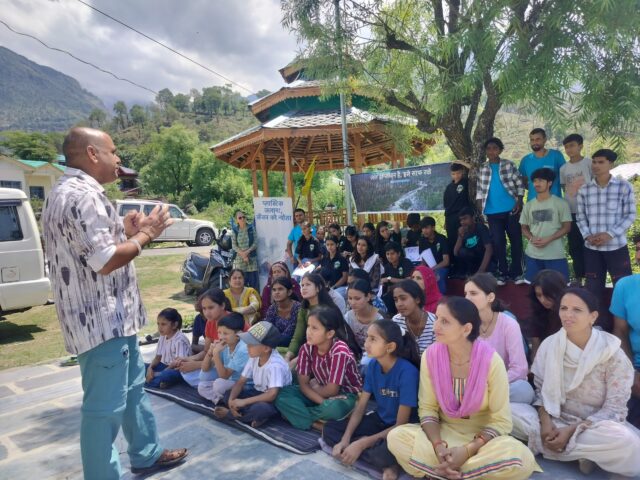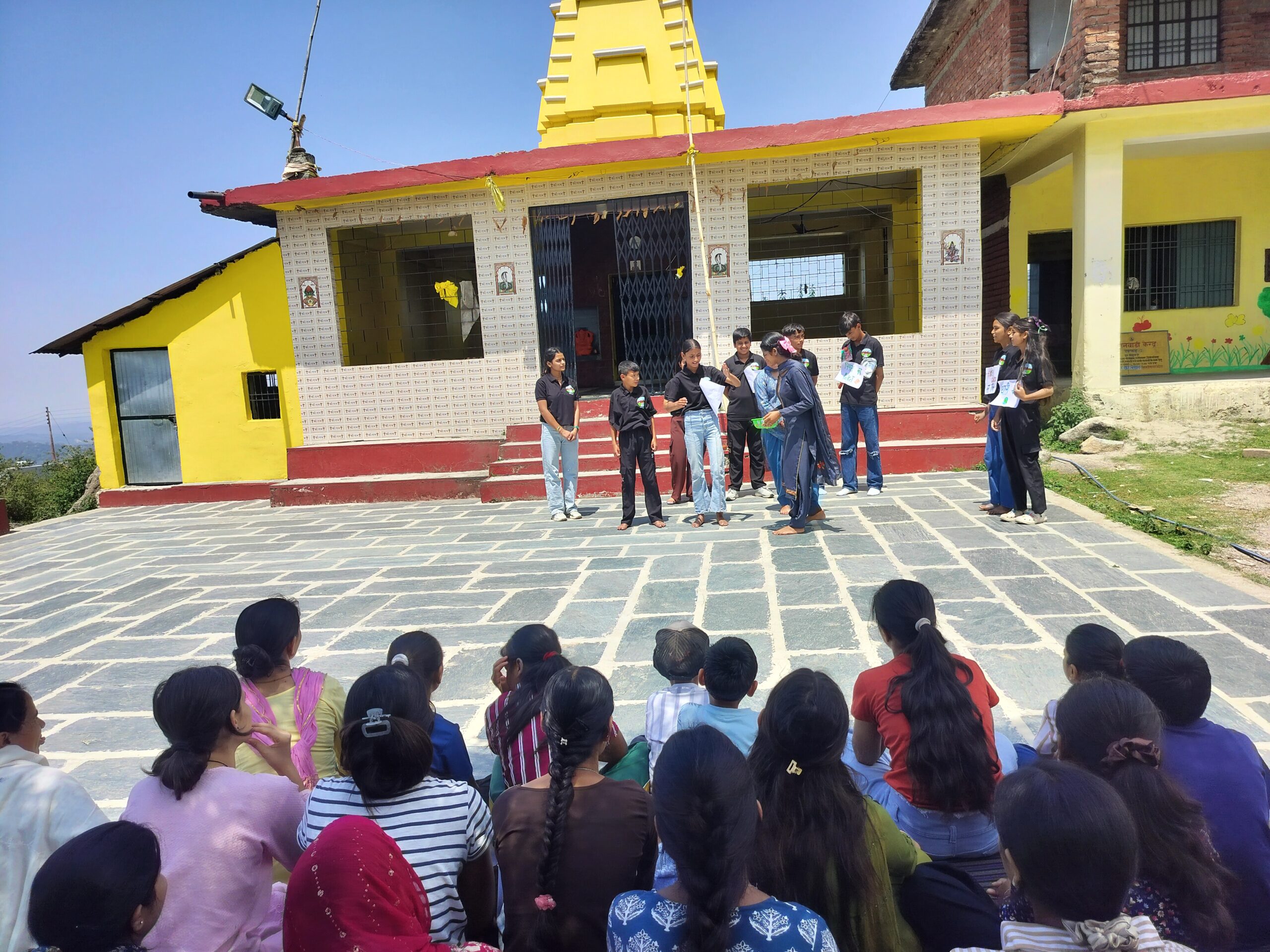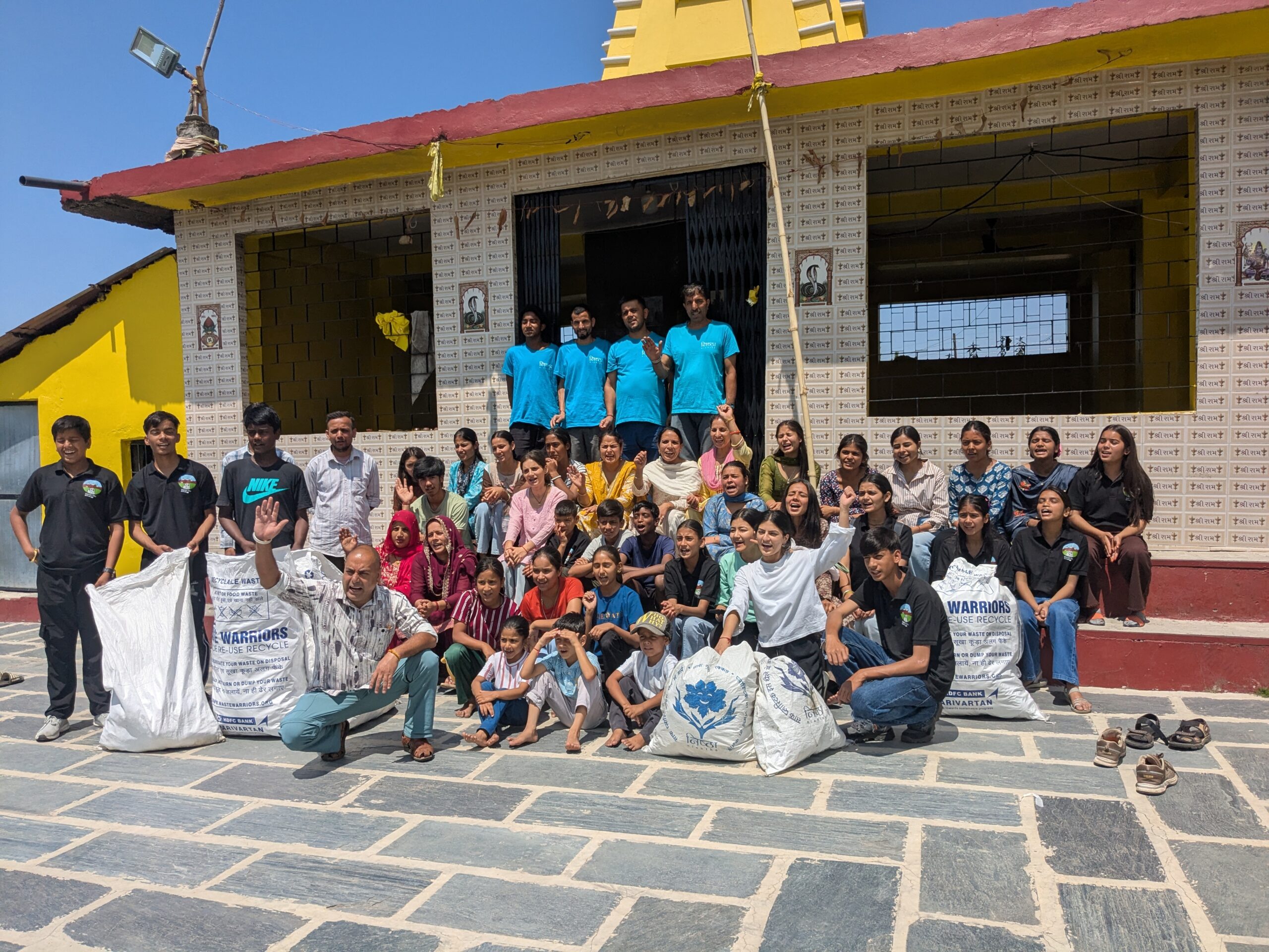 On environment day our students and children marched, cleaning up the sides of the road and the streams from the playground and school up beyond the Nag Mandir collecting 14 sacks of garbage on the way. They then held a rally at outside the anganwari where a group of girls from Tillu village performed a skit, Mohinder gave a talk and Vijay Bhadwaj and our sponsorship students sang the environment song reminding everyone not to carelessly throw their garbage.