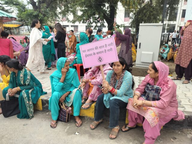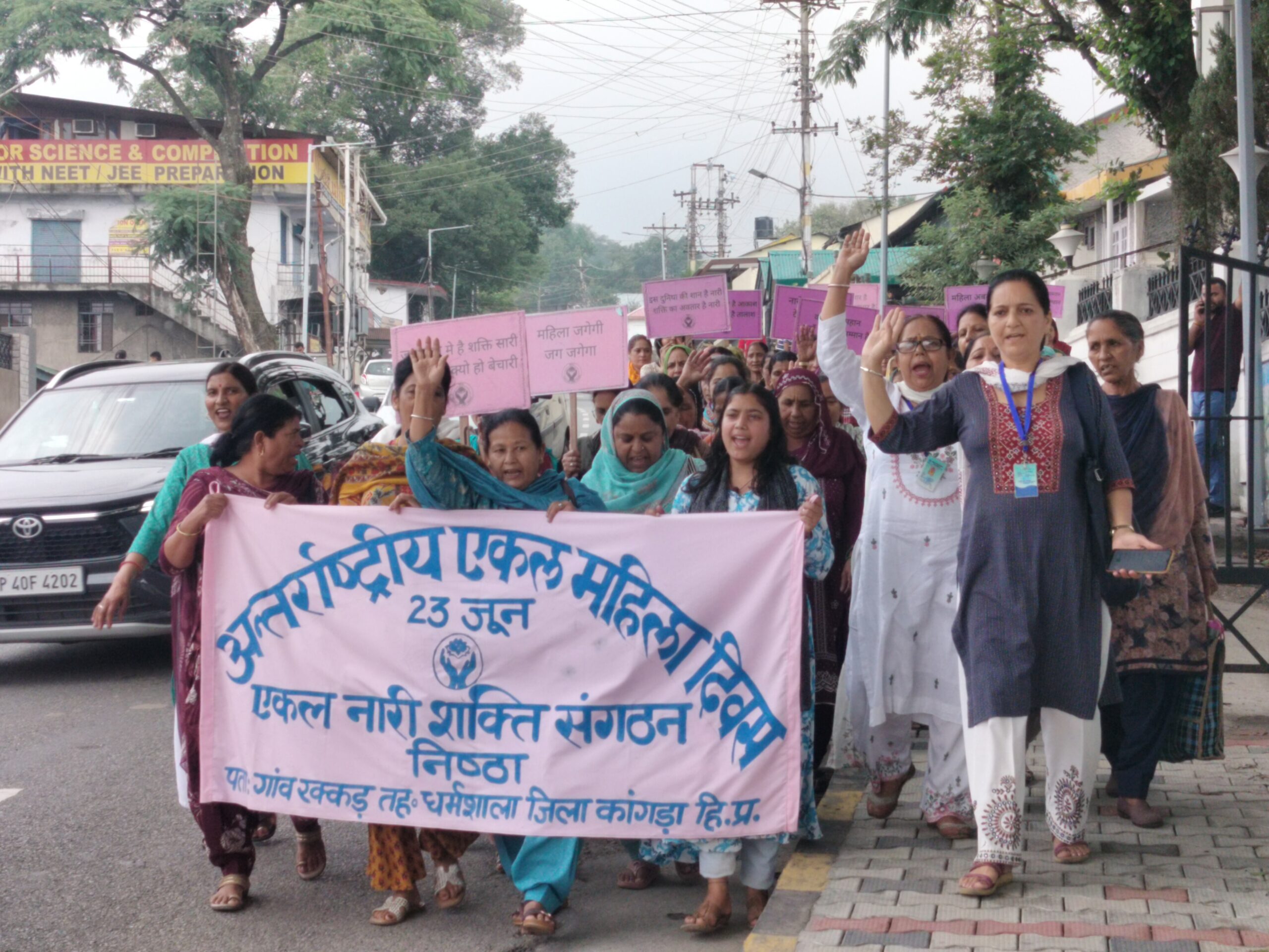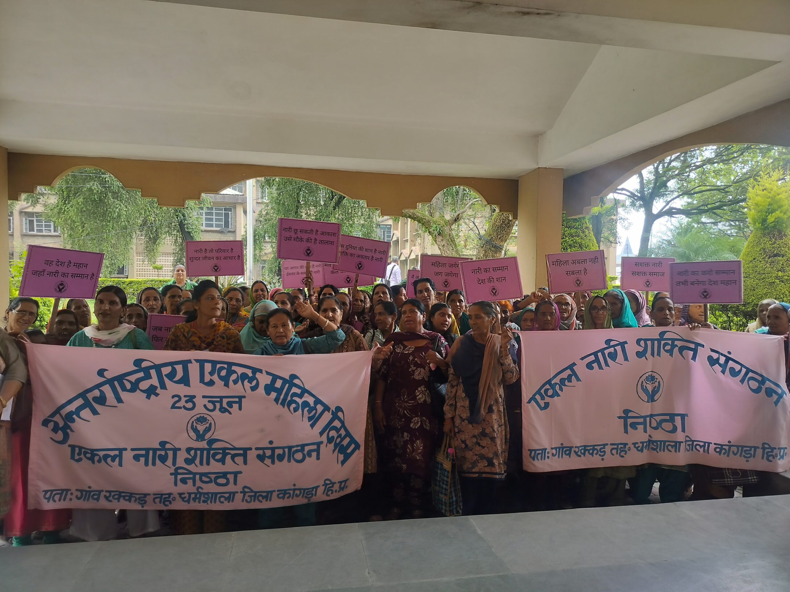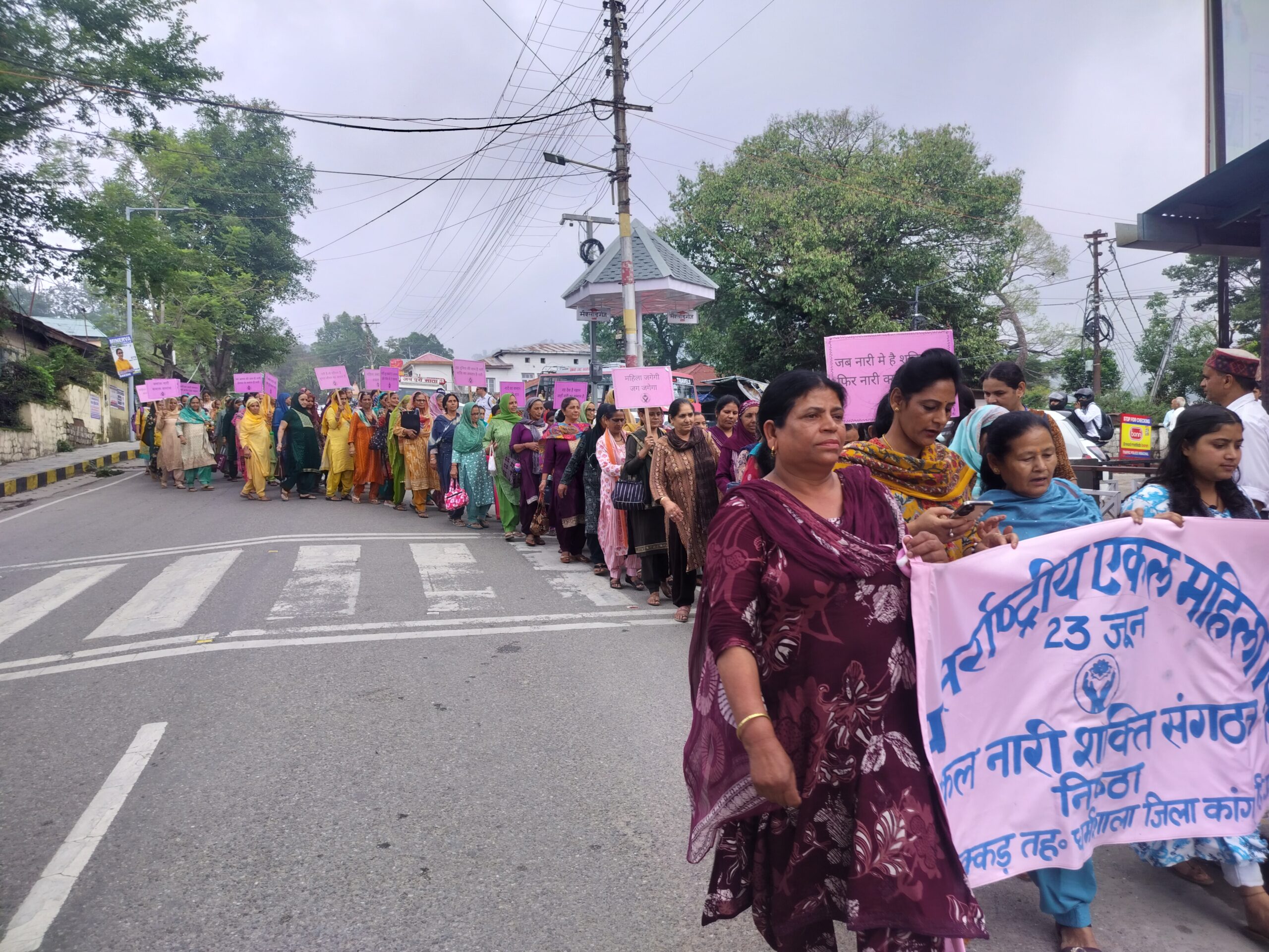 On the occasion of International Widows Day, 119 women took part in a rally organized by the single Women in Dharamsala Their aim was to raise awareness about the challenges faced by widows and single women and to submit a letter to the District Commissioner (DC) seeking immediate attention to their concerns. These include an increase in pensions for widows, swift implementation of Government schemes for the welfare single women’s families, inclusion of Single Women in the BPL (Below Poverty Line) Category, elimination of caste certificate requirement for accessing welfare schemes and simplification of documentation procedures which are very difficult for most poor, vulnerable women to submit. They also ask for recognition of the very diverse needs and situations of widowed and abandoned women who cannot be regarded as a homogenous group as they have different needs based on age, location, health, and family responsibilities. The women marched carrying pink banners, slogans and bags from the Post Office to the DCs office where seven individual applications were submitted to the DC.