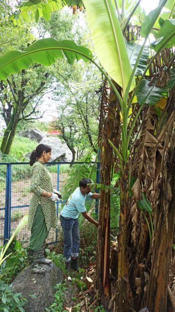Over the past two months, the farm team has put in tremendous effort to develop the farm, despite prolonged rainy days. The team dedicated themselves to cutting the grass, chopping it into small pieces and then mulching all the plants to protect them from the heavy rain washing all the soil from around them. Their dedication has brought visible results, with crops like ladyfinger, long beans, kidney beans, pumpkin, bitter gourd, turmeric, and ginger showing better-than-usual growth. Every Friday, Vijay and Ankush visit the farm with a chart to monitor and analyse the plant performance. The farm team has shown great enthusiasm for this process, maintaining detailed records in their diaries, which greatly aids in preparing reports and assessment for future planting.